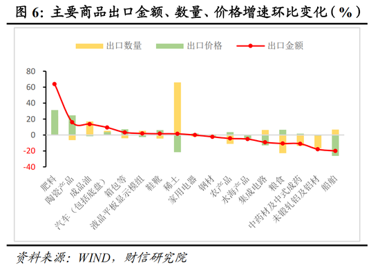 从出口数目和价钱看,出口数目增速和价钱增速环比回升的品种分歧为8种和9种,(见图6),数目身分和价钱身分共同对本月出口形成赞成。
